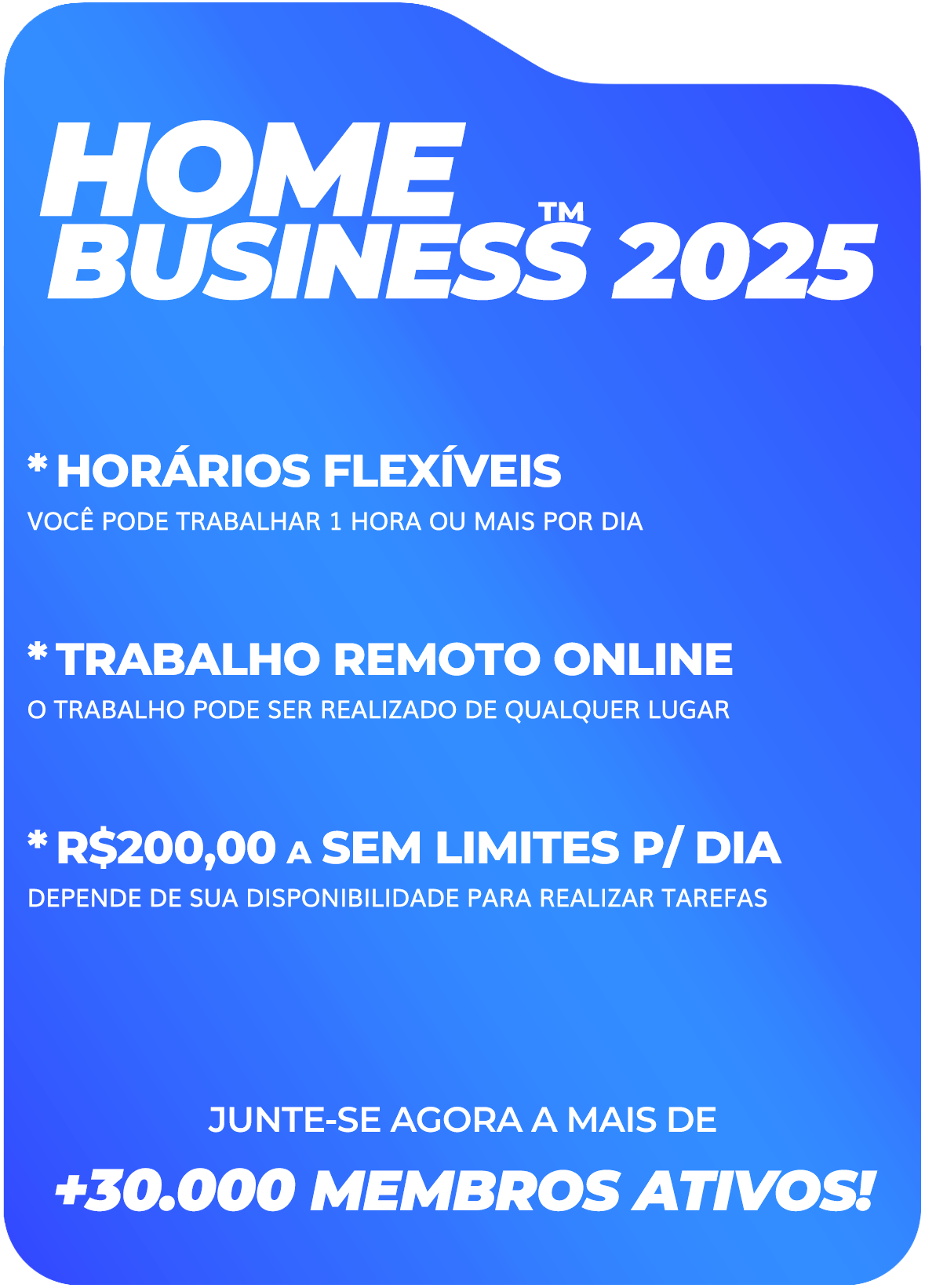 HOMEBUSINESS™ 2025. Todos os direitos reservados. O conteúdo deste site é propriedade exclusiva do HOMEBUSINESS™. A reprodução, modificação, distribuição, publicação, transmissão ou qualquer forma de cópia não autorizada é estritamente proibida.